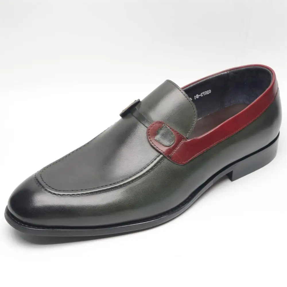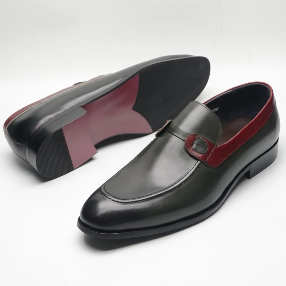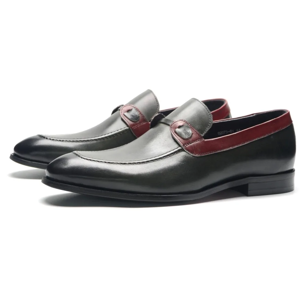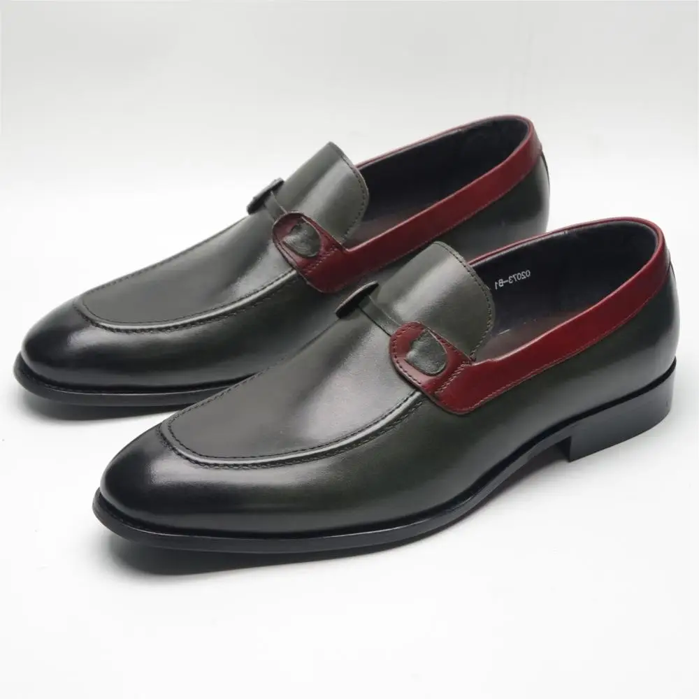 New Luxury Italian Leather Handmade Shoes Colorblocking Trendy Cowhide Loafers